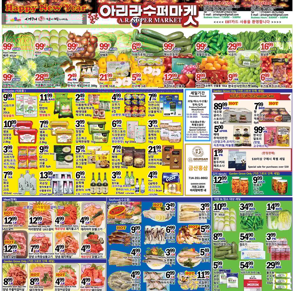 Produce/Seafood/Meat/Kimchi: December 25, 2025 (Thursday) - December 28, 2025 (Sunday)